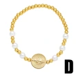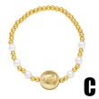 Pulseira feminina com 26 letras em inglês, contas de cobre europeias e americanas, pulseira elástica de pérolas, pulseira fashion com letras de coroa brf80