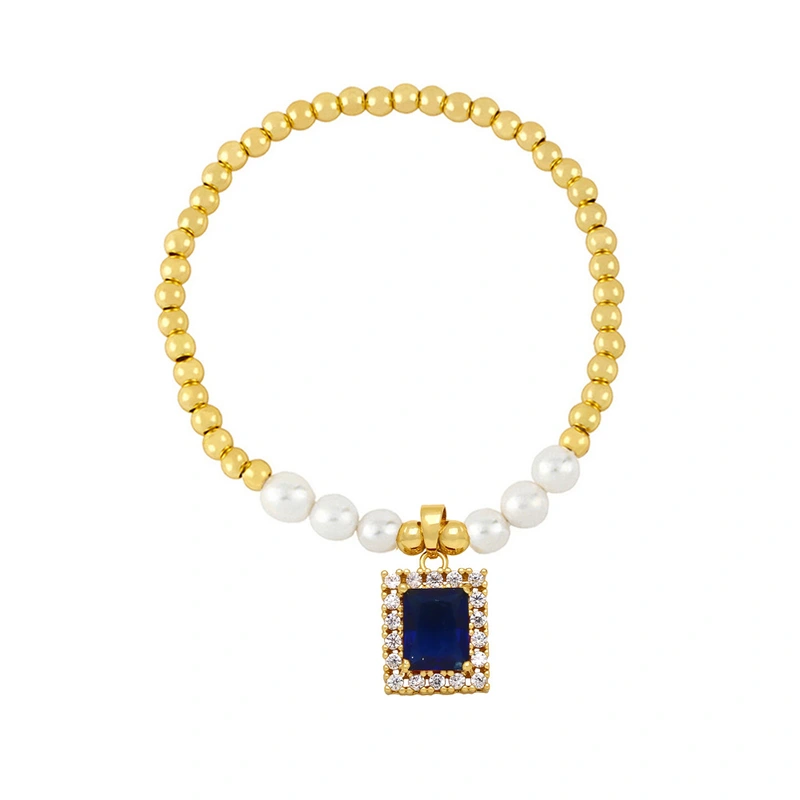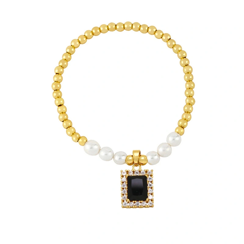 Pulseira retangular de zircônia e pérola com design de nicho feminino, pulseira de alta qualidade, pulseira de moda europeia e americana brk33