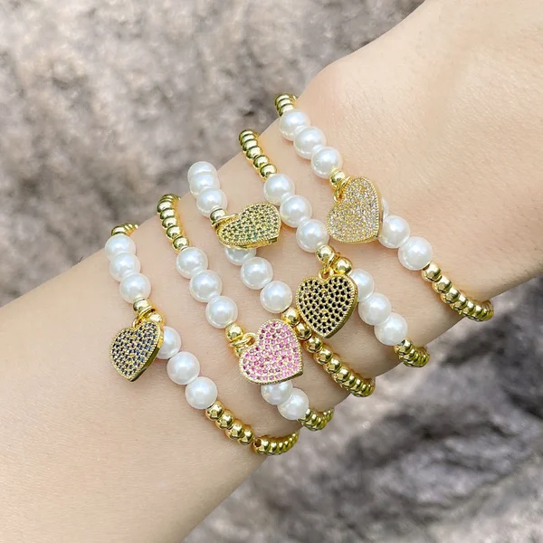Pulseira vintage de pérolas e corações, cordão de mão, design moderno, estilo moderno, joias de mão mais vendidas, brg70