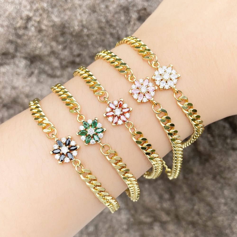 como joias europa e estados unidos venda quente pulseira pingente de flor banhada a ouro incrustada joias de zircônia colorida atacado brg89