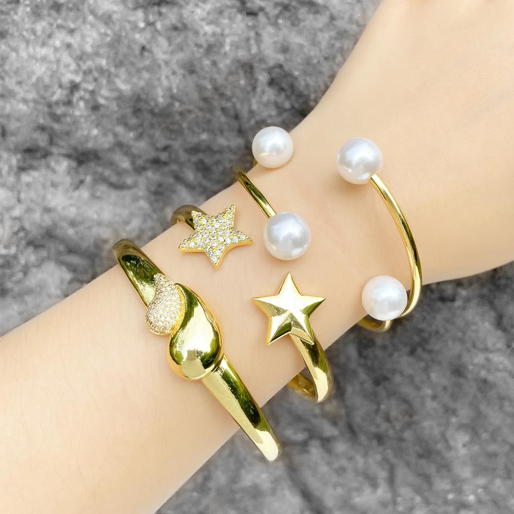 como joias europeias e americanas moda pérola estrela pulseira feminina de alta qualidade cobre banhado 18k ouro pulseira atacado brb33