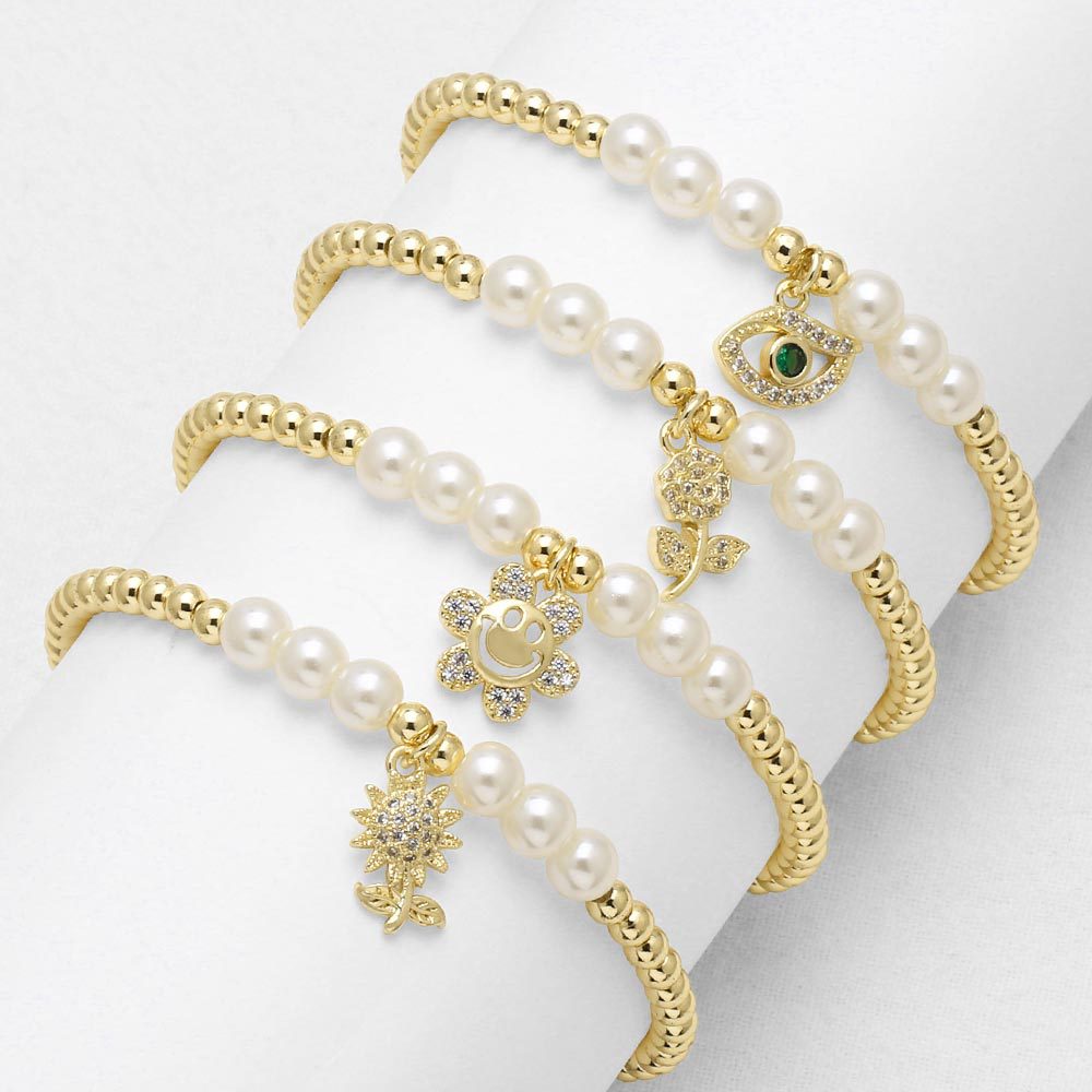 como joias europa e estados unidos pulseira de pérolas mais vendida pingente de gatinho de peixe cogumelo pulseira feminina joias de mão banhadas a ouro bra24