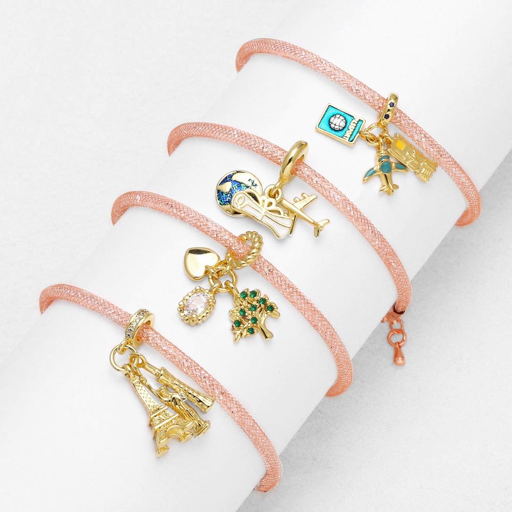 como joias europeias e americanas criativas banhadas a cobre ouro verdadeiro zircônia planeta terra passaporte pingente pulseira joias brm43