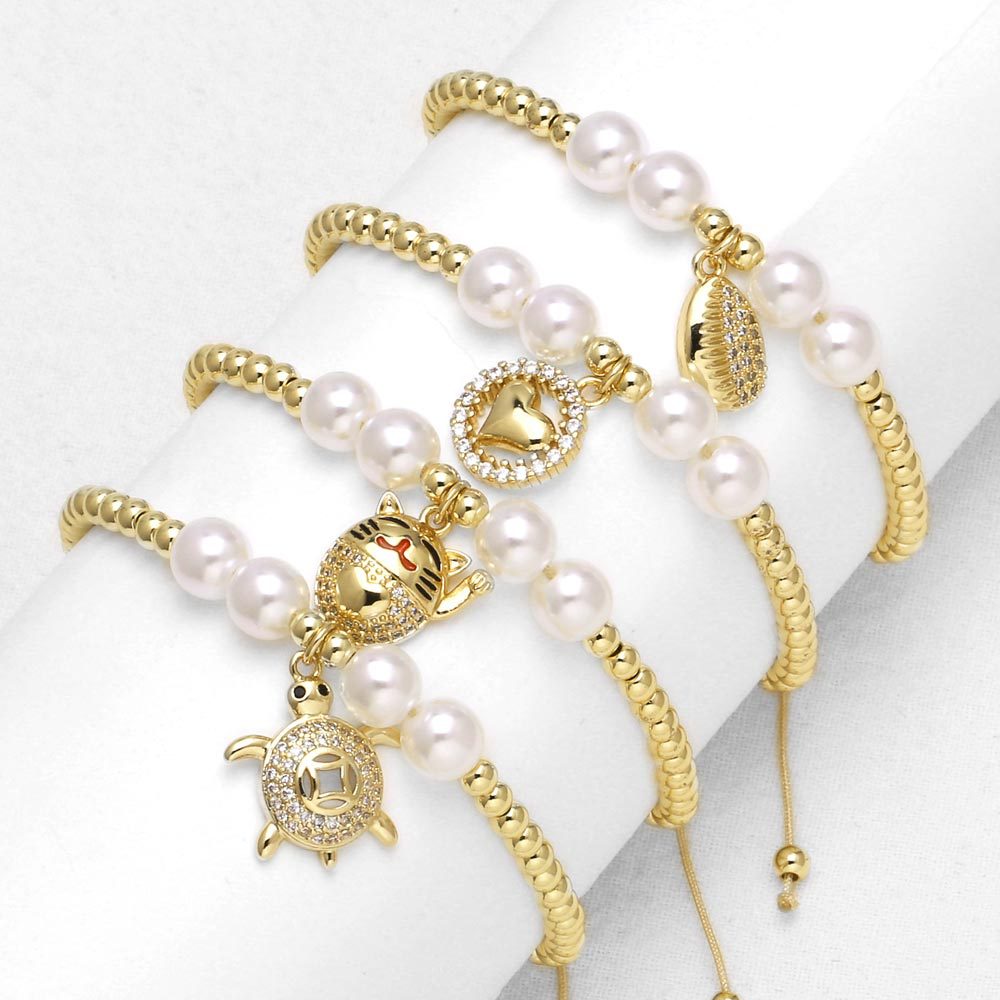 como joias europeias e americanas pérola dinheiro tartaruga gato da sorte pingente pulseira banhada a ouro pulseira do amor joias de mão brh13