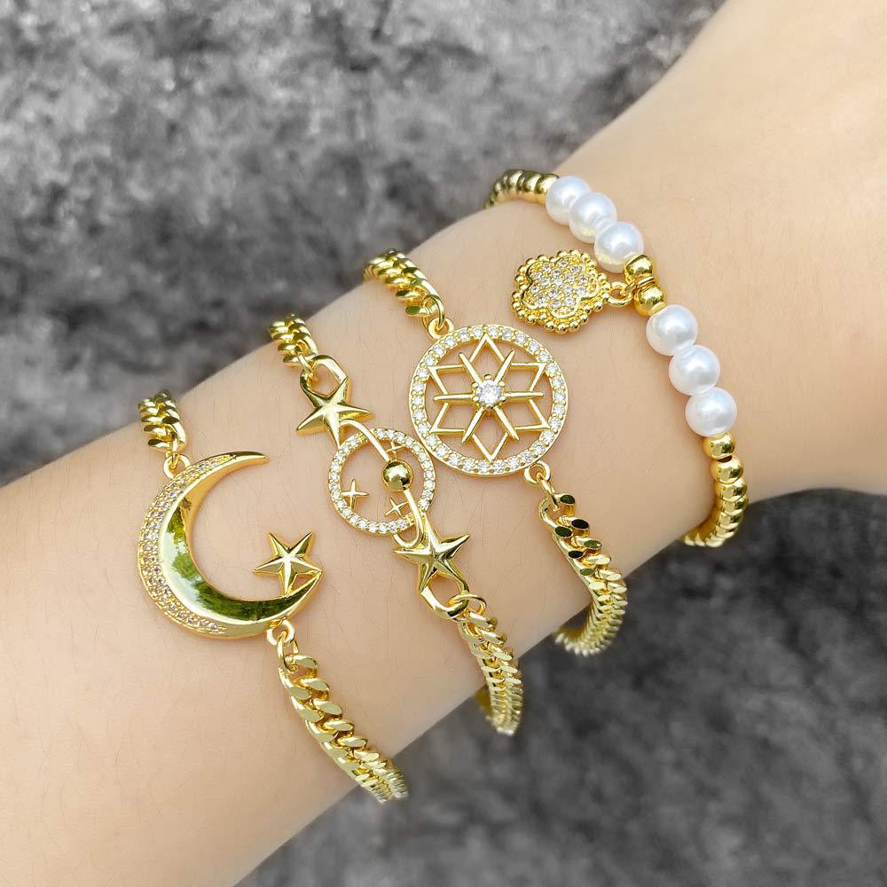 como joias mais vendidas pulseira de pérolas lua estrela cobre banhado 18k incrustado zircão joias de mão sutiã16