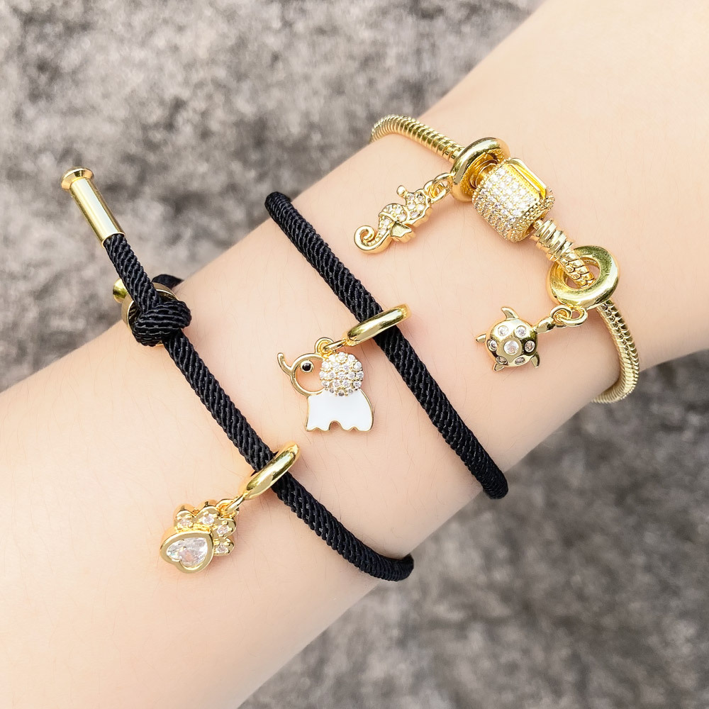 Como joias mais vendidas, pulseira com pingente de elefante, cavalo-marinho e tartaruga, banhada a cobre, joias de ouro verdadeiro brb26