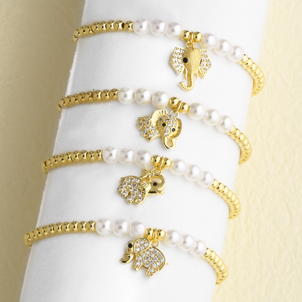 Como joias mais vendidas, pingente de elefante animal banhado a cobre, ouro verdadeiro, pulseira com contas de pérolas, joias de mão, sutiã feminino 59