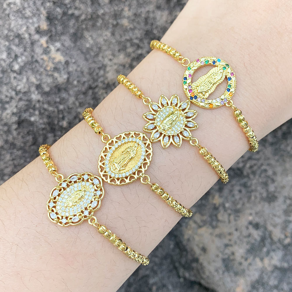 Pulseira simples de moda europeia e americana da Virgem Maria com temperamento e zircônia incrustada, pulseira ajustável removível da Virgem Maria brb83