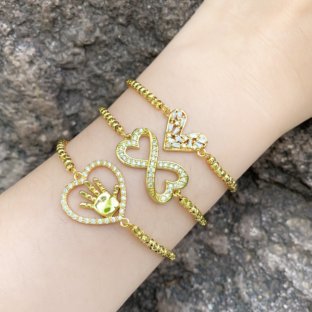 Pulseira de zircônia estilo europeu e americano, estilo simples, temperamento feminino, versátil, em formato de coração, ajustável, removível, brc27