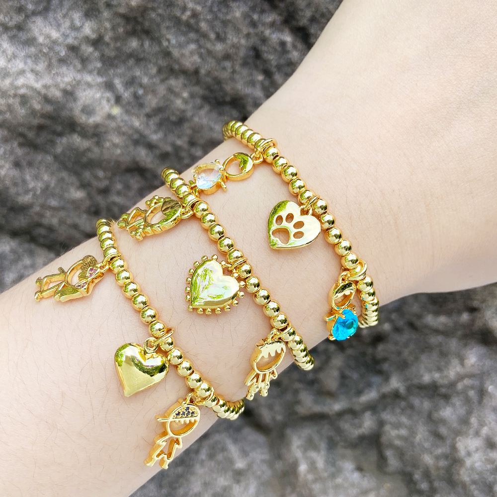 como joias europeias e americanas pingente de coração amor pulseira feminina banhada a ouro menino menina gota de óleo joias de mão brf01