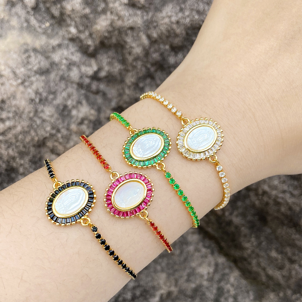 como joias nova pulseira virgem maria feminina banhada a cobre ouro verdadeiro incrustado zircônia colorida joias de mão bre25