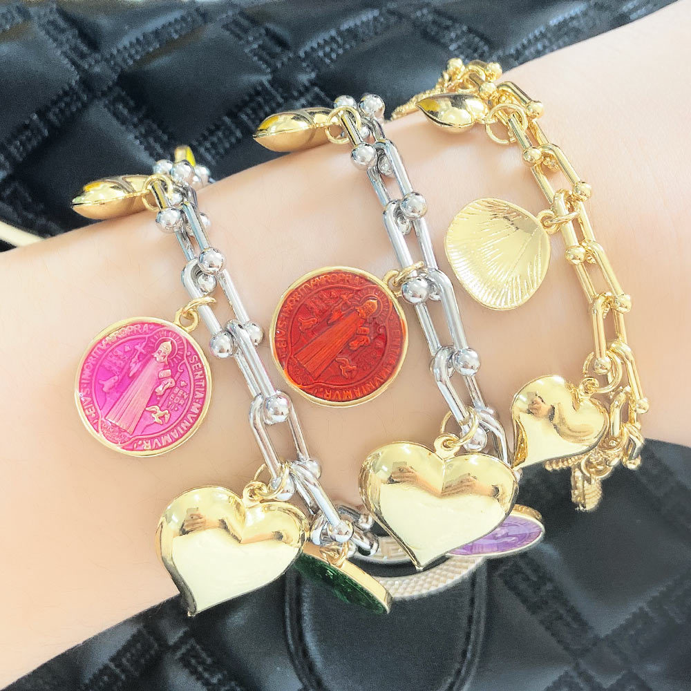 liquidação nova pulseira pingente cor pêssego madonna bicolor joias femininas bre08