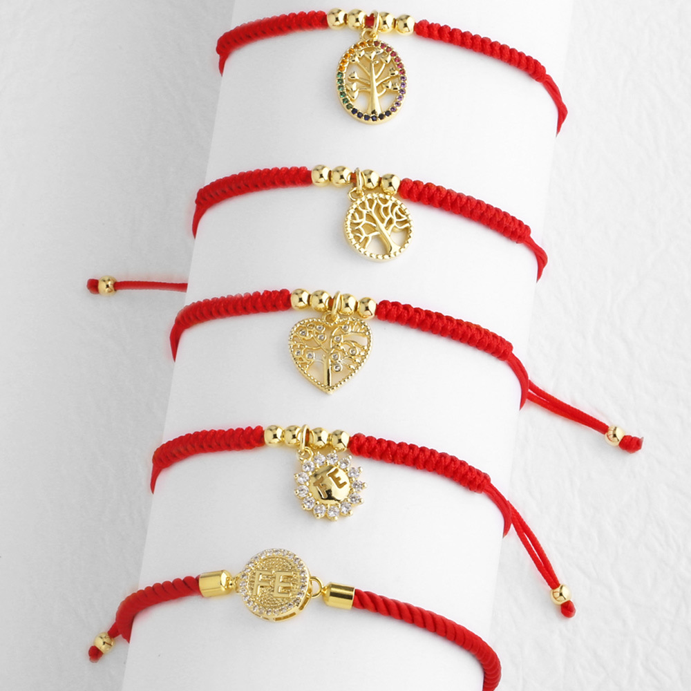 como joias estilo quente, corda vermelha tecida à mão, pulseira com pingente de árvore da vida feminina brd17