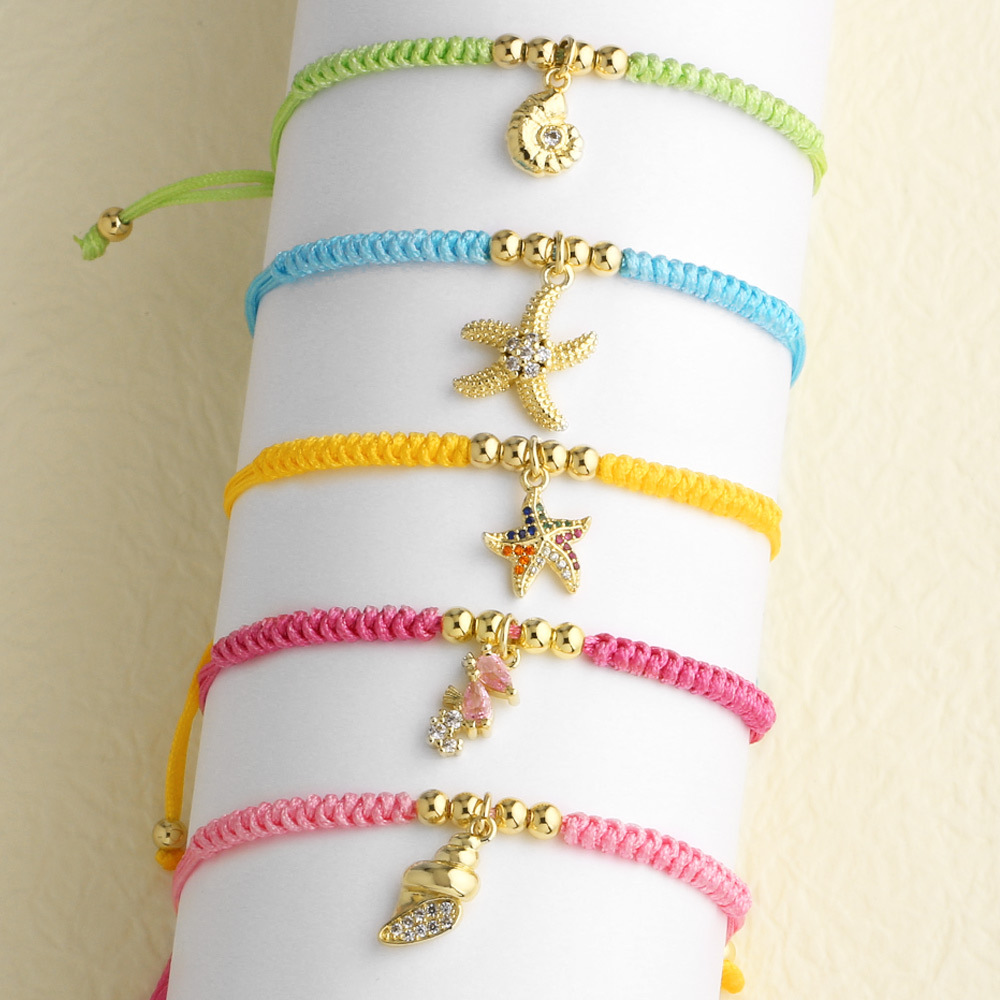 Como joias europeias e americanas, simples, mais vendidas, pulseira com pingente de concha de estrela do mar, feita à mão, corda brd10