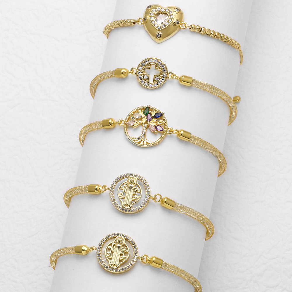 como joia mais vendida em cobre banhado a ouro 18k pulseira ajustável cruz madonna brd51