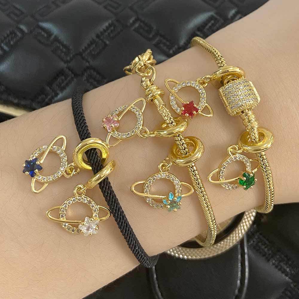 Como joias na Europa e nos Estados Unidos, pulseira feminina banhada a cobre, ouro 18k, coração e estrela, joias femininas faça você mesmo com zircônia incrustada, brf65