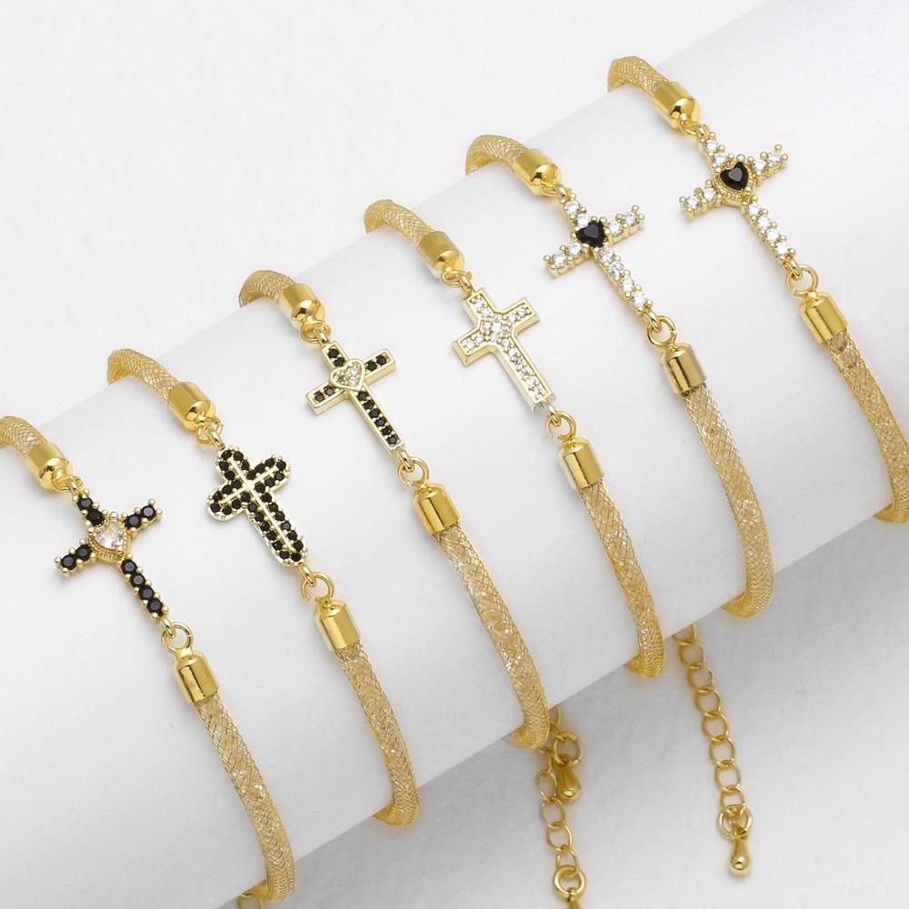 Pulseira estilo europeu e americano com pingente de cruz e diamante banhado a ouro brb68