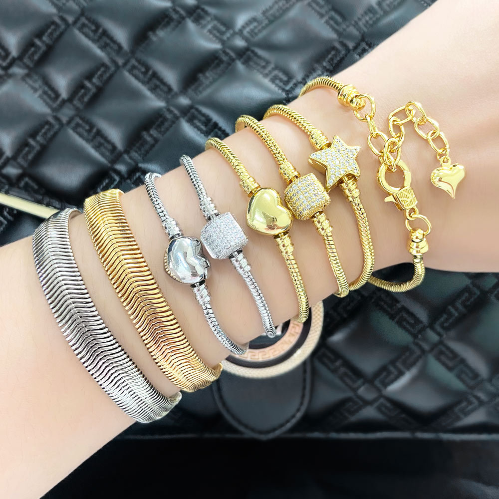 Pulseira de zircônia incrustada de amor mais vendida, personalidade feminina, versátil, banhada a ouro, joias para meninos e meninas brc98