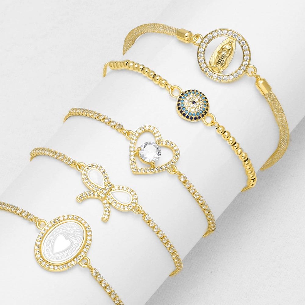 como joias europeias e americanas pulseira virgem maria feminina banhada a cobre pulseira de laço de ouro 18k brm21