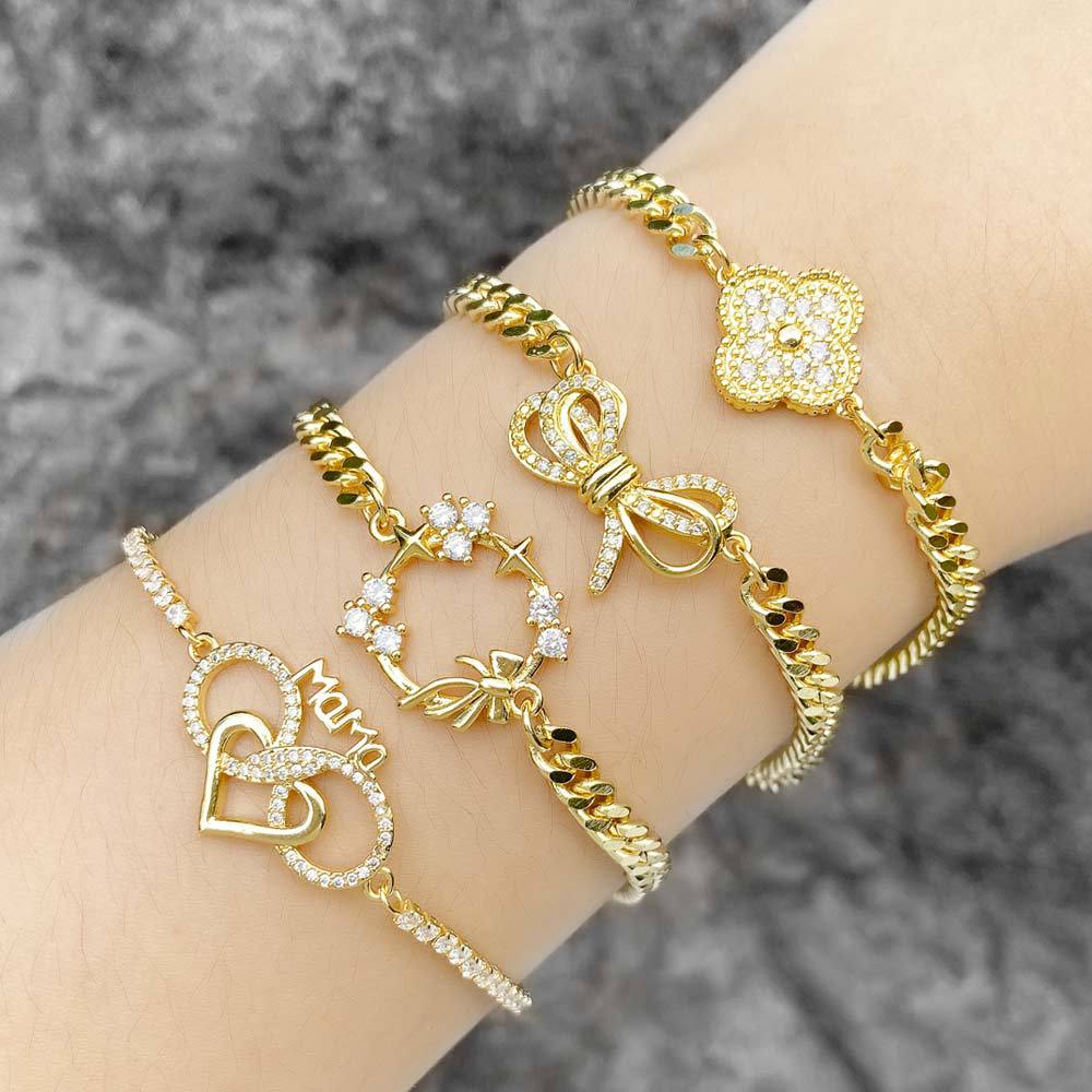 como joias europa e estados unidos pulseira de borboleta de amor mais vendida feminina banhada a ouro zircônia flor joias de mão pulseira brm66