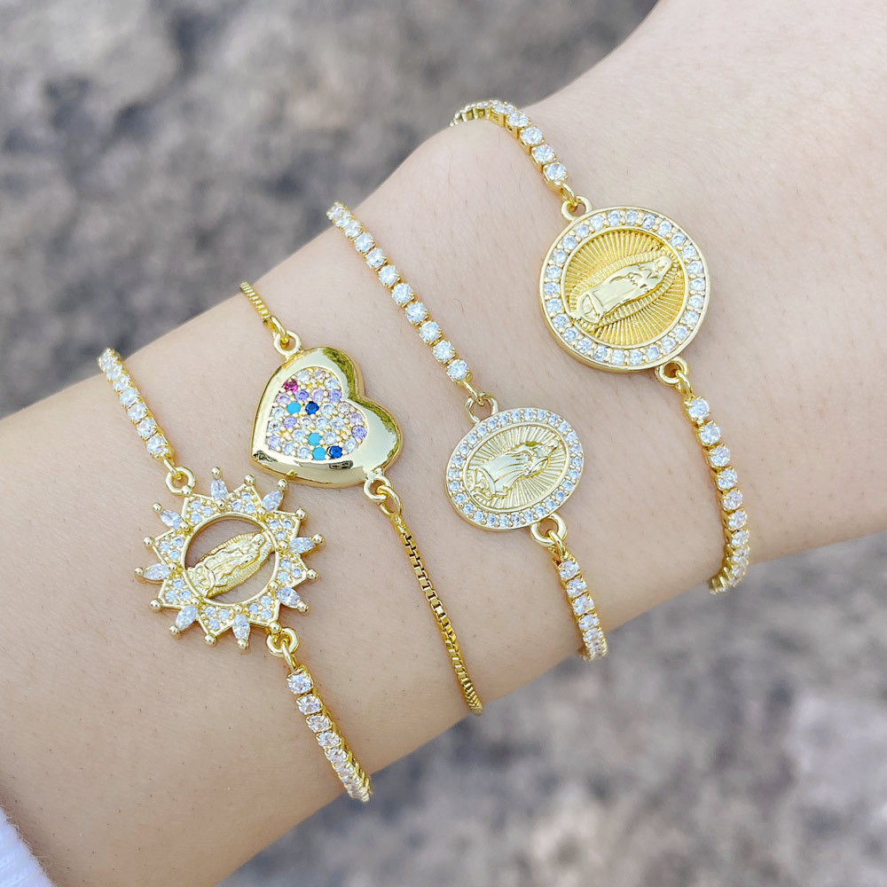 como joias europeias e americanas pulseira virgem maria feminina banhada a cobre ouro verdadeiro zircônia cheia estrela de cinco pontas joias de mão brk15