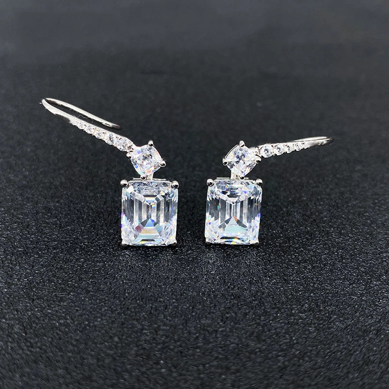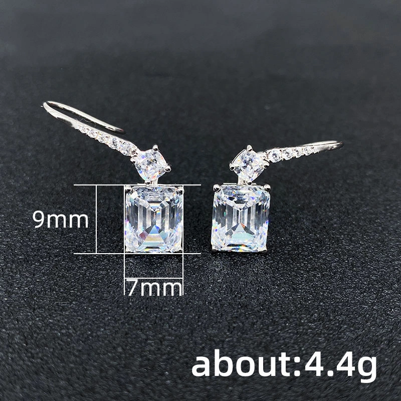 Transmissão ao vivo de brincos de diamante pagode quadrados de luxo com super flash light, brincos de diamante de nicho para mulheres, tendência de ganchos de orelha