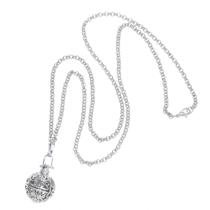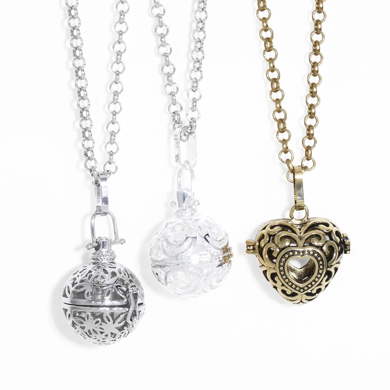 Venda imperdível colar com pingente de sino de palácio de aromaterapia oco com caixa mágica colar suéter corrente feminino nkb025