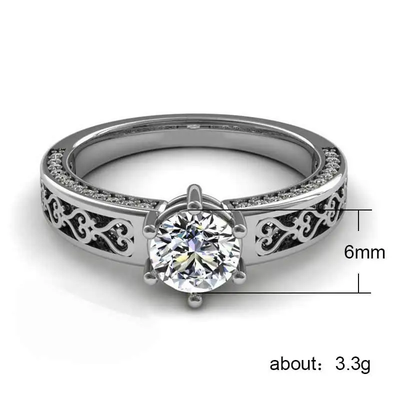 Anel de casamento clássico com seis garras de zircónia, estilo celebridade, microincrustado, leve, luxuoso, estilo europeu e americano