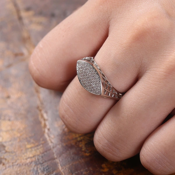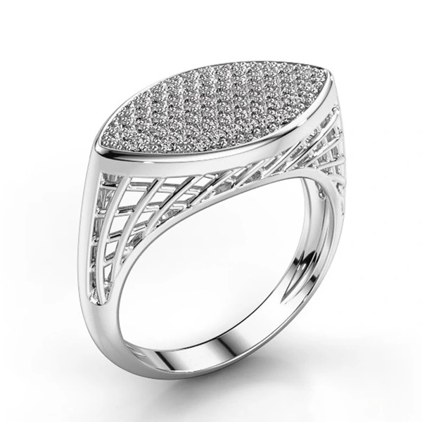 Anel de design de luxo europeu e americano, temperamento moderno, anel de zircónia olho de cavalo, design oco multicamadas, anel para dedo indicador