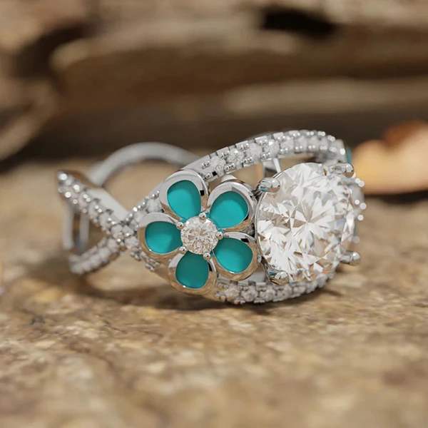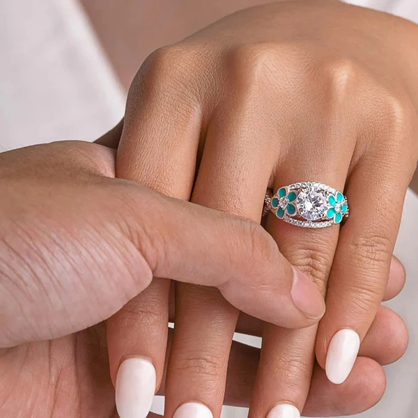 Vendas diretas da fábrica anel de flores pintura a óleo design gota pequeno anel fresco proposta feminina casamento requintado anel único