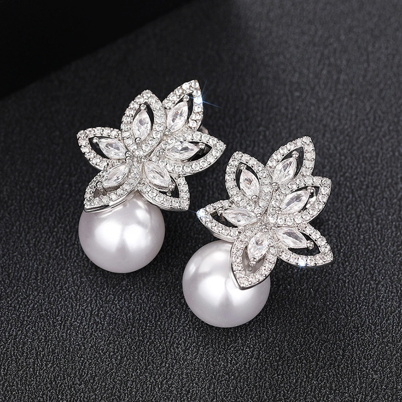 Vendas diretas da fábrica de brincos populares imitação de pérola flor marquise design brincos leves estilo luxo joias