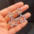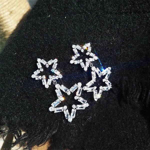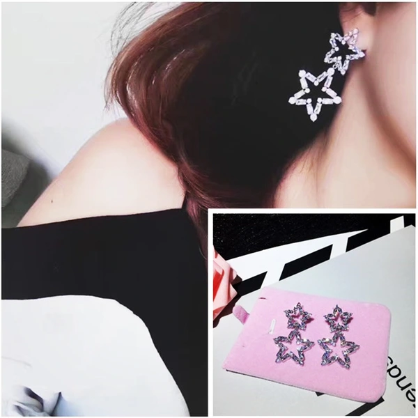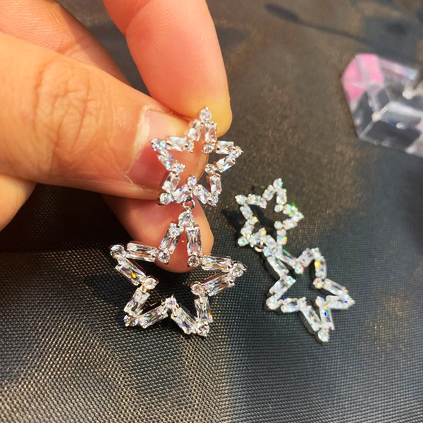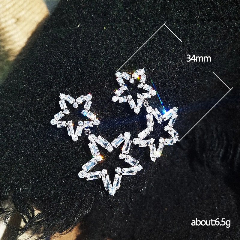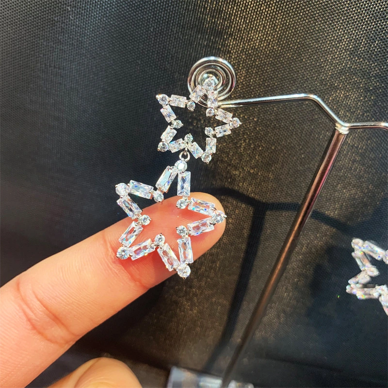 Versão coreana dos brincos de estrela de cinco pontas, brincos leves de luxo estilo estrela oca, brincos a condizer para festa de finalistas feminina