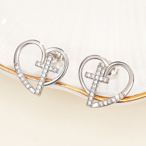 Brincos de alta qualidade para serviços pesados, totalmente incrustados, luxuosos brincos de coração em forma de C, brincos de moda europeus e americanos