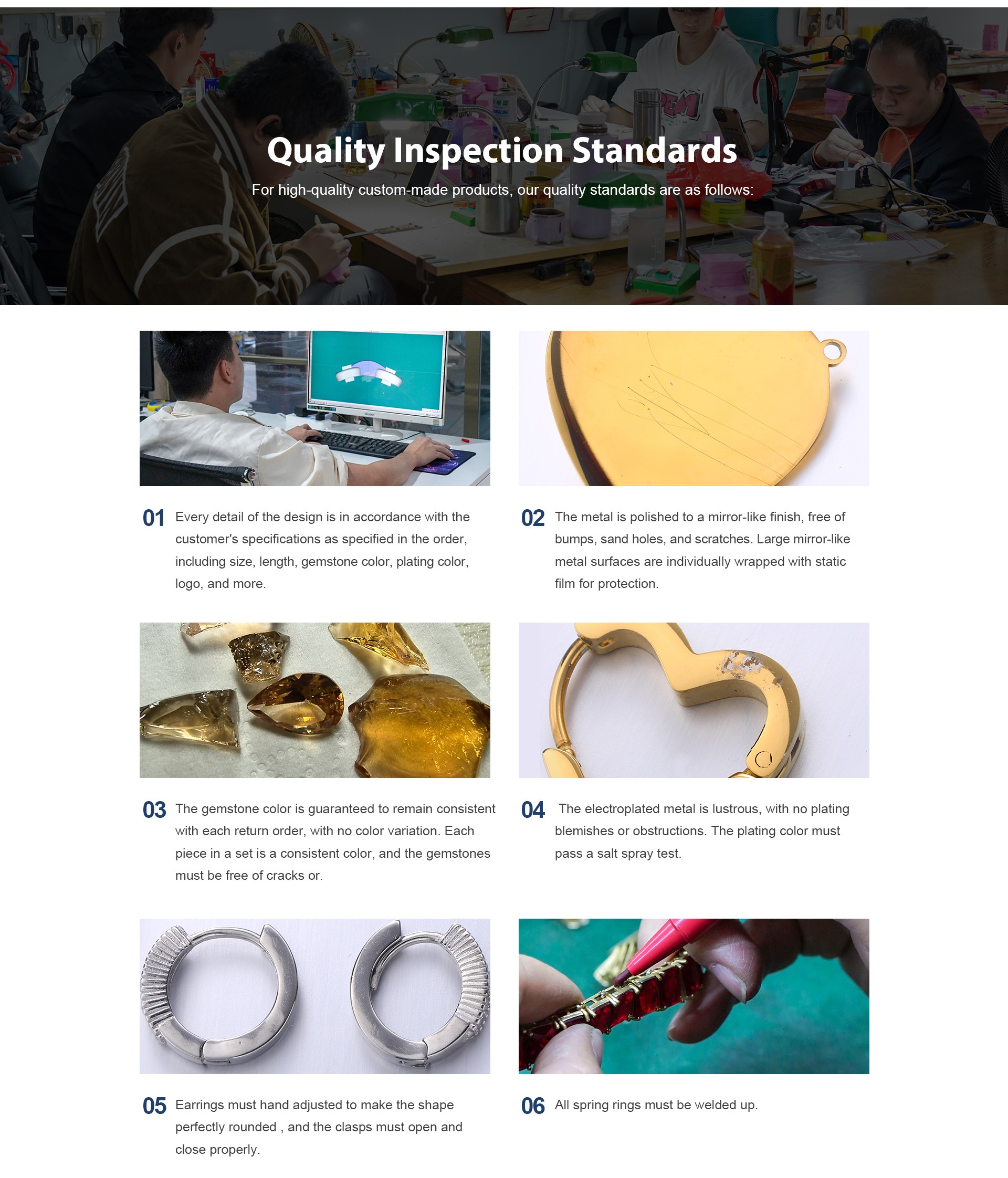 1. Every detail of the design is in accordance with the customer's specifications as specified in the order, including size, length, gemstone color, plating color, logo, and more.