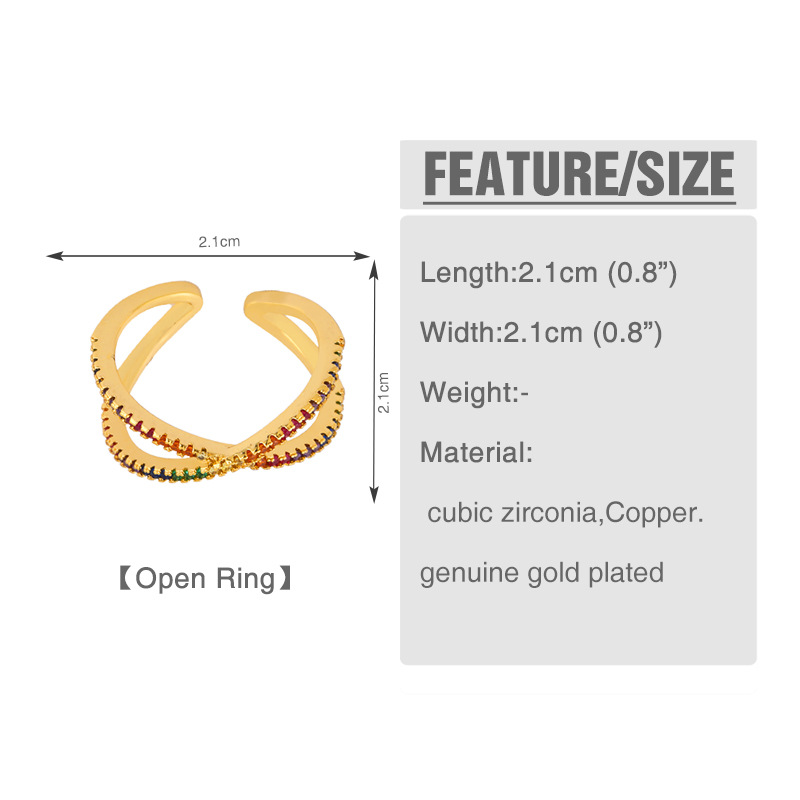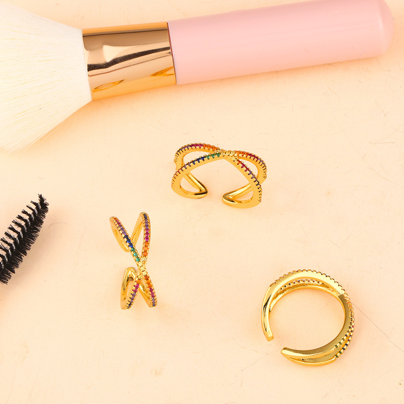 Rainbow Rings Aosheng Jewelry Open Geometric Cross Ring Fashion Diamond Ring Wholesale rih90