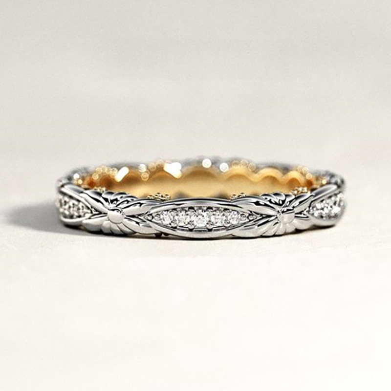 Recommended simple and exquisite women's full circle micro-inlaid two-color ring versatile index finger ring hand jewelry
