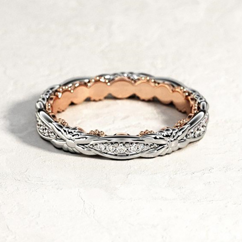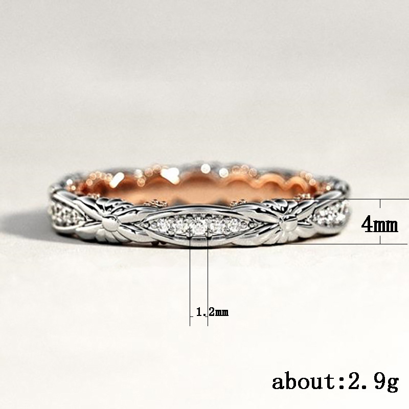 Classic four-claw imitation zircon micro-inlaid ring women's double row two-color twist arm ring engagement wedding ring women