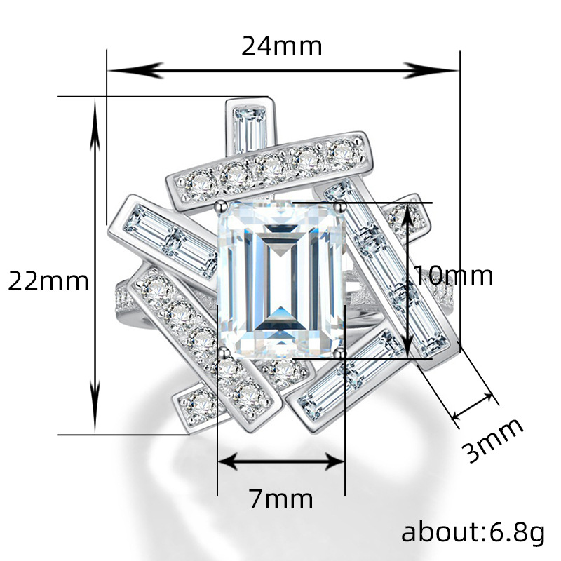 Rectangular interwoven thread ring European and American geometric diamond ring high and low staggered design ring