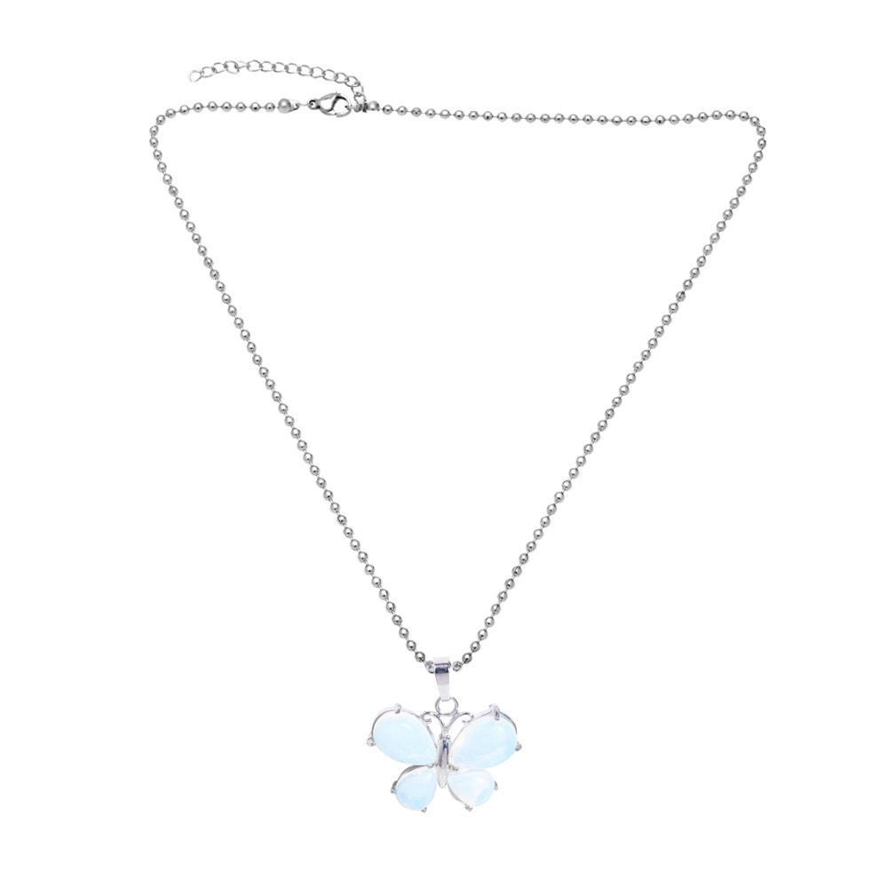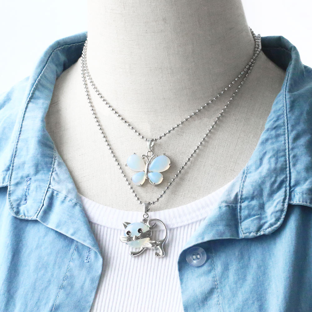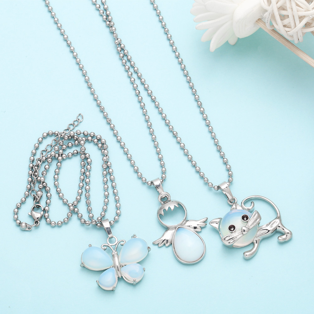 Retro cute opal inlaid kitten butterfly necklace European and American niche design simple angel pendant nkr93