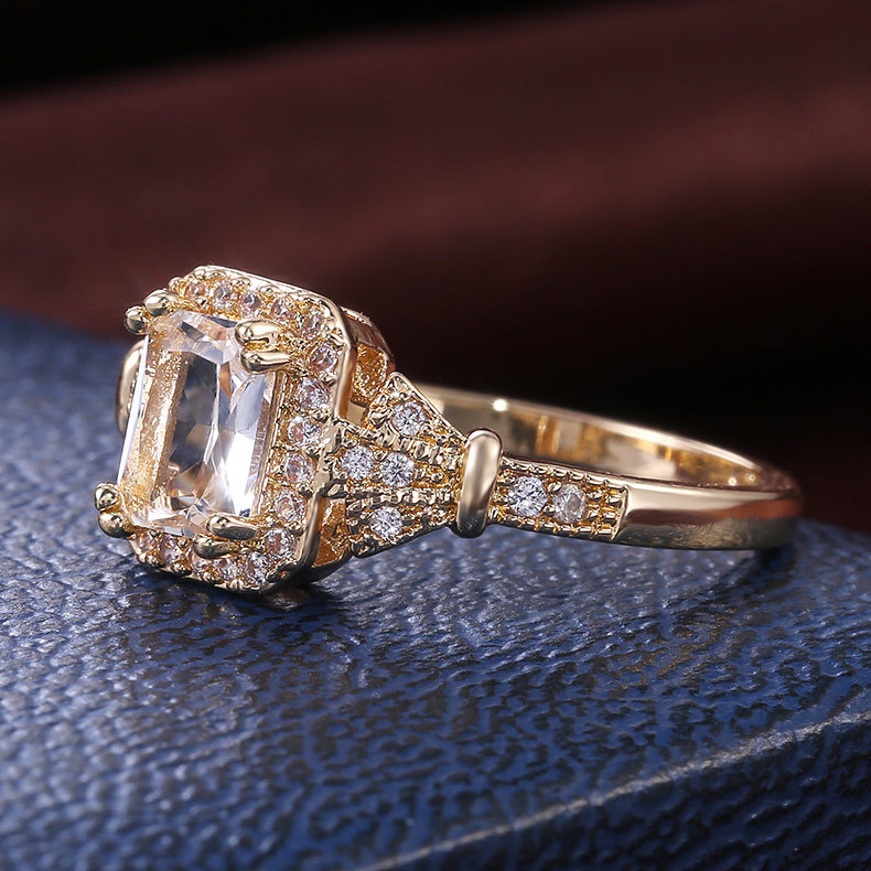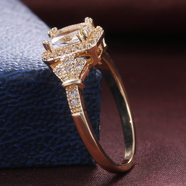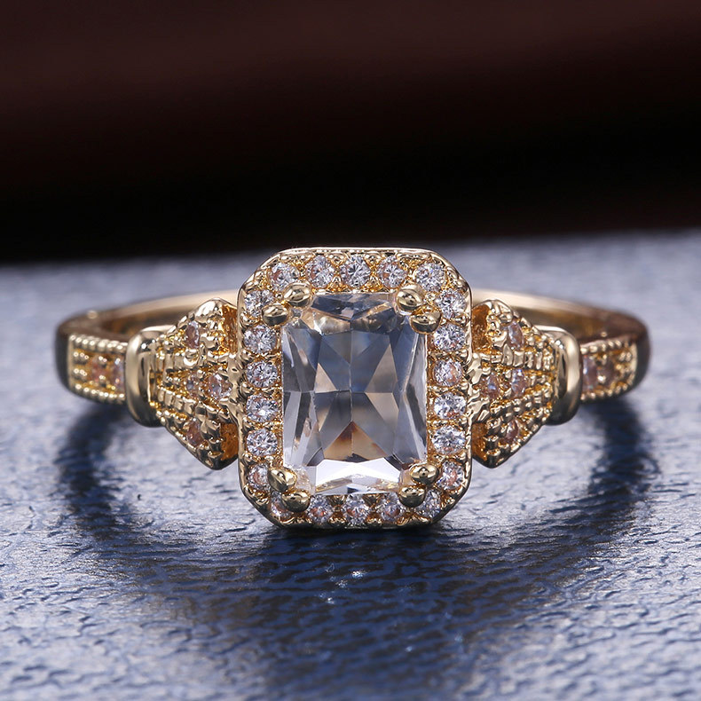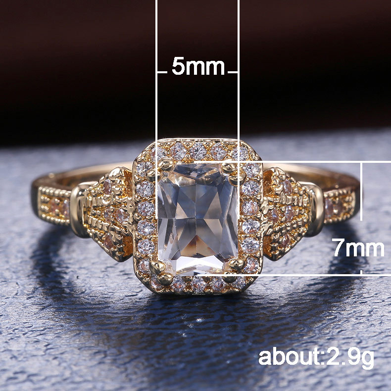 Retro design European and American fashion claw-set rectangular zircon ring real gold electroplated jewelry