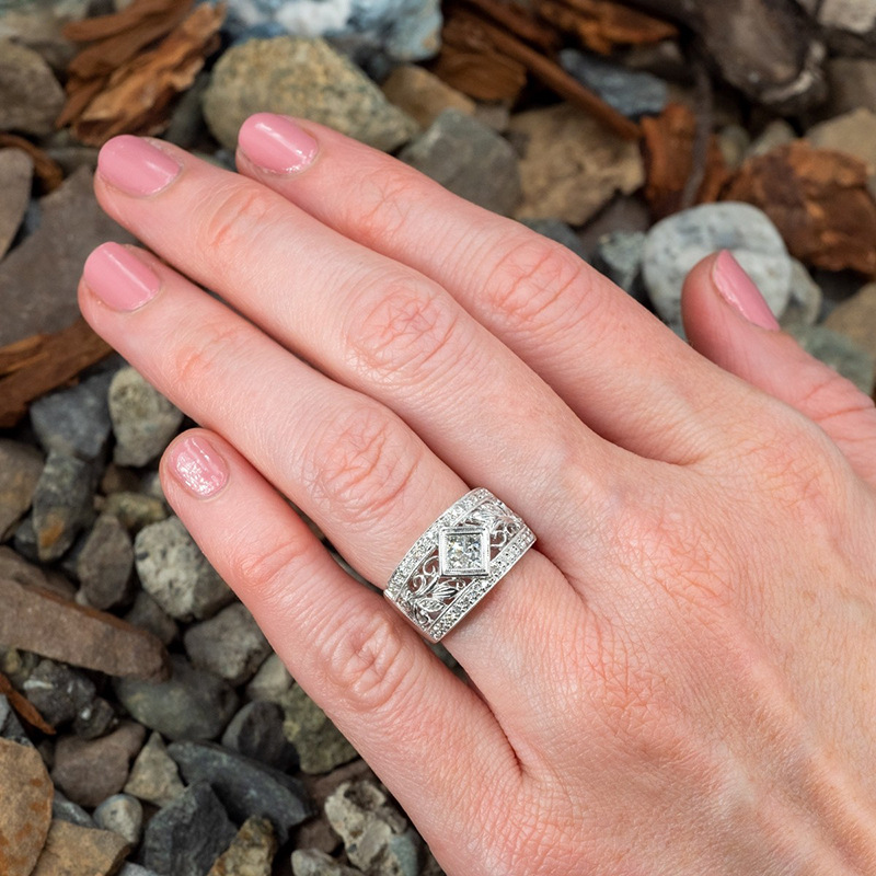 Retro ethnic style wide ring geometric diamond quadrilateral fashion ring branch vine female ring