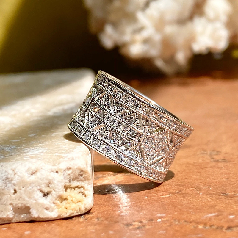 Micro-inlaid celebrity style classic all-match popular ring six-claw zircon wedding ring European and American style light luxury ring