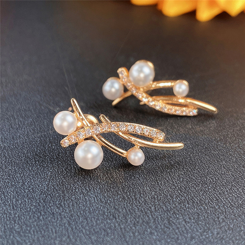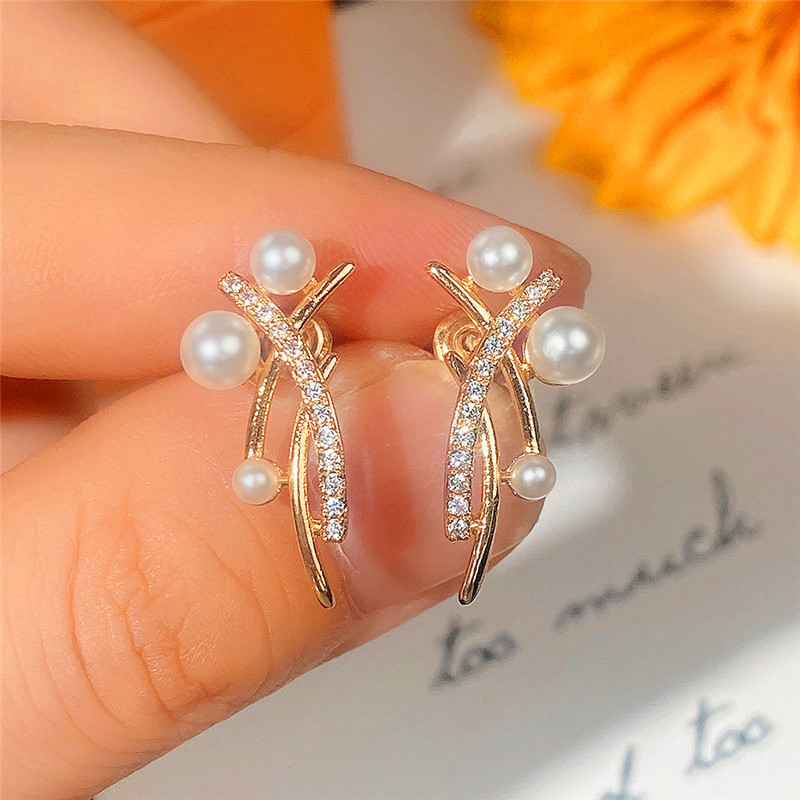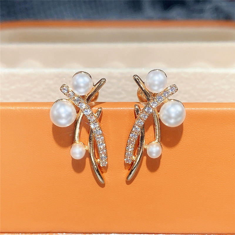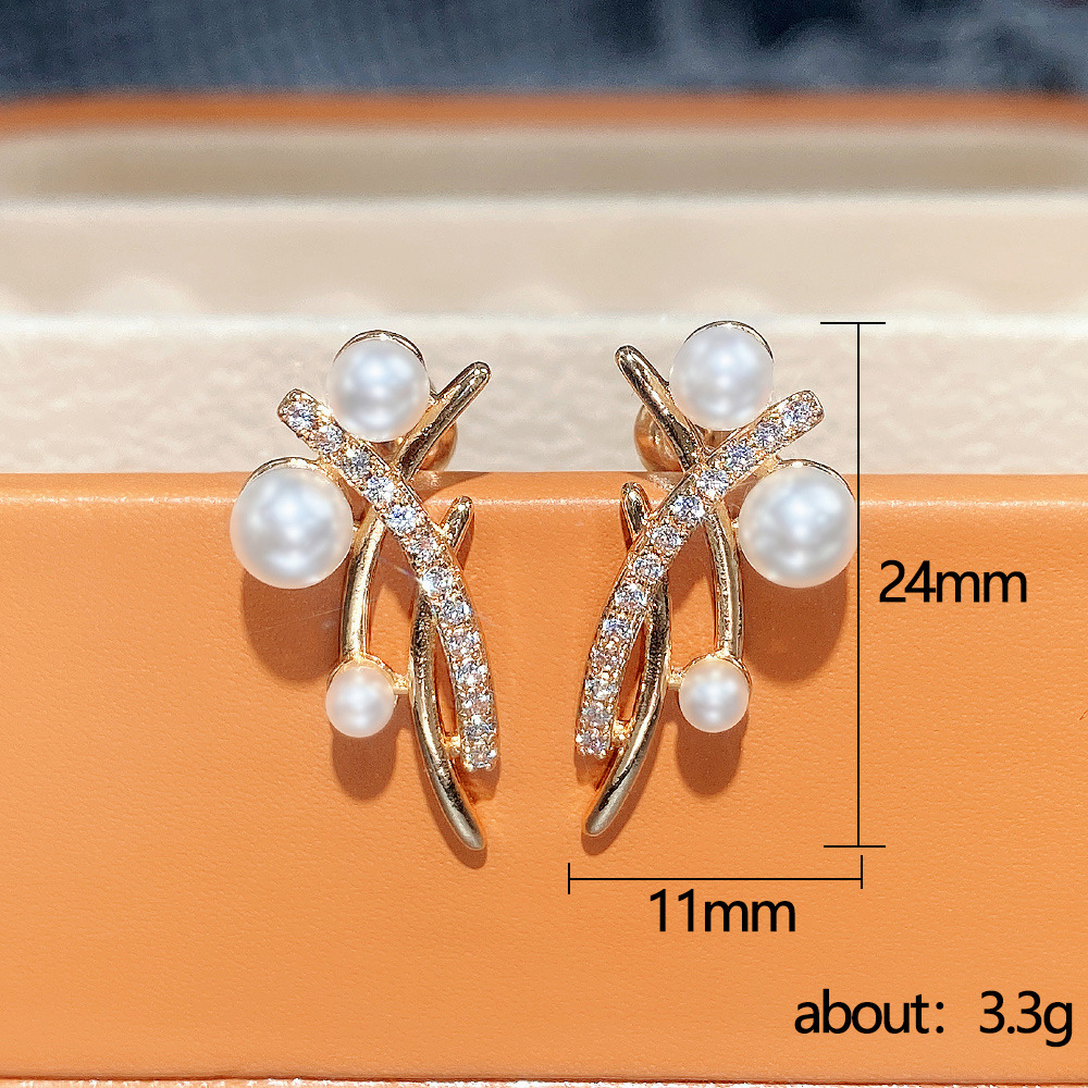 Retro fashion earrings Baroque cross line imitation pearl earrings women's tassel diamond super fairy earrings