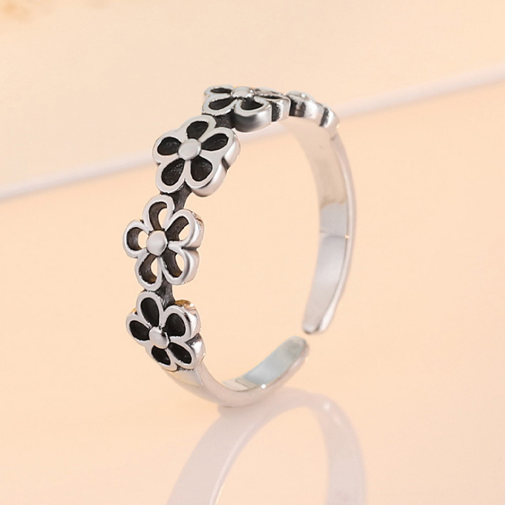 Retro flower ring Korean style five flower old ring open ring rich flower ring jewelry