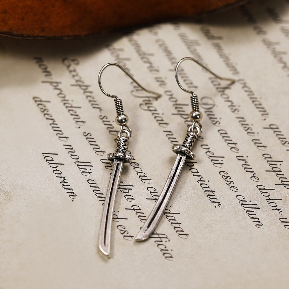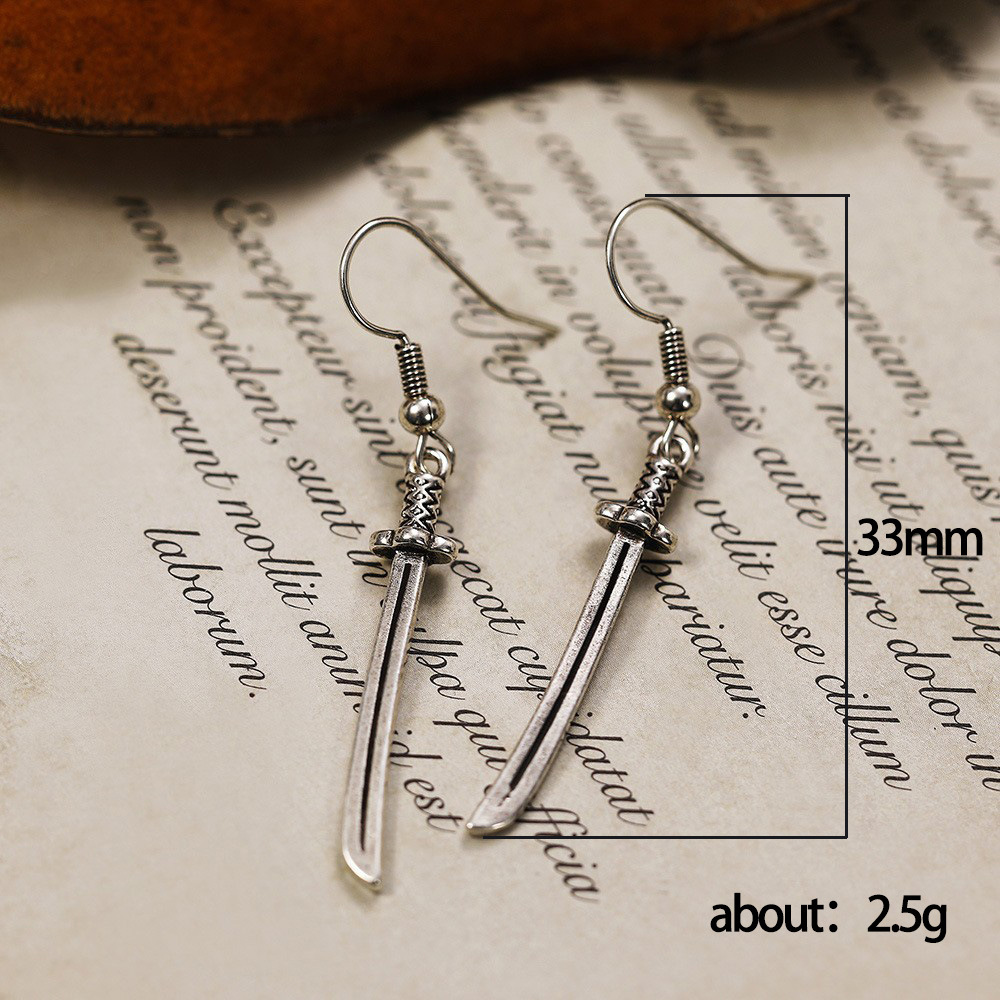 Retro Harajuku dark long knife pendant earrings Gothic men's cool and fashionable men's earrings