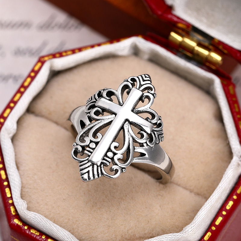 New zircon ring hollow cross four claws fashion design proposal wedding ring birthday gift ring