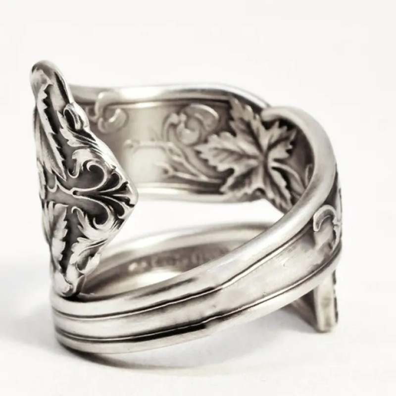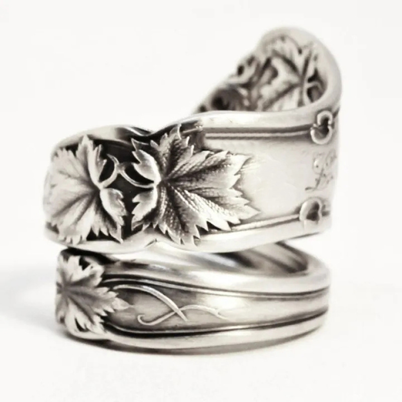 Retro open maple leaf ring texture black maple leaf jewelry fashion simple old jewelry ring