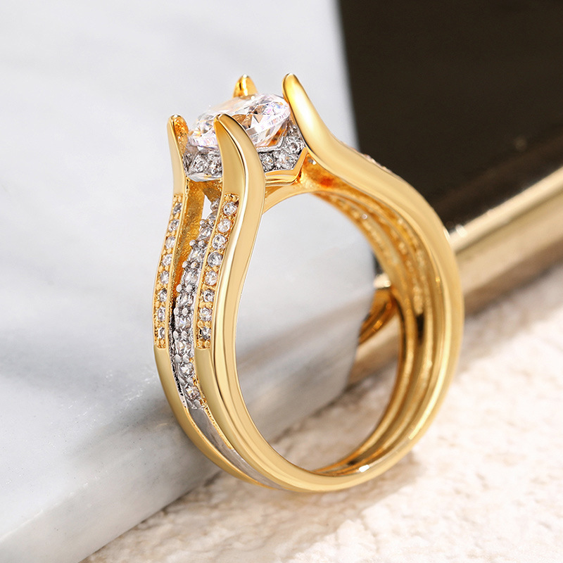 Retro palace-style arch bridge ring, fashionable and popular two-tone ring, hot selling wedding ring