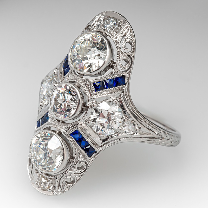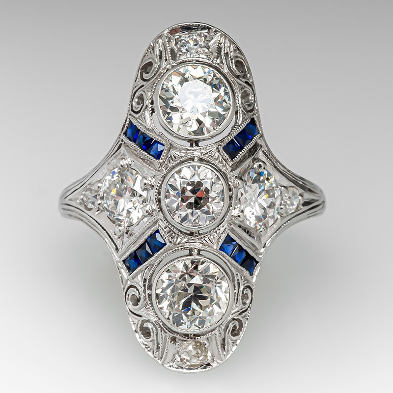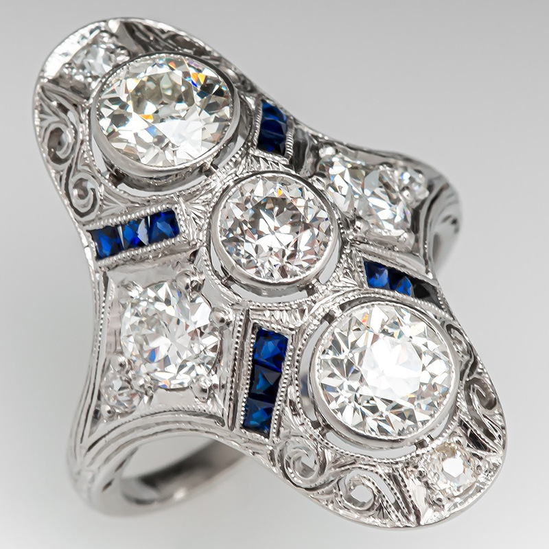 Retro ring female geometric French retro ring female palace style light luxury style ring