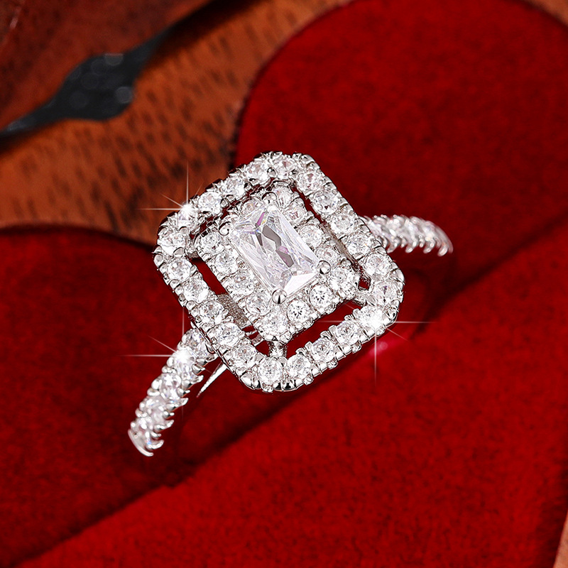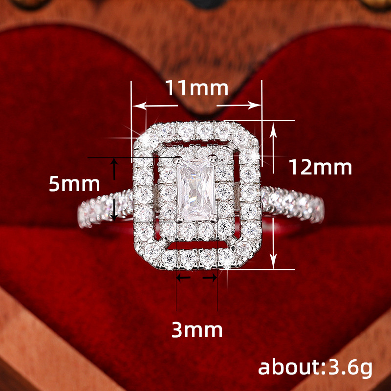 Hot selling new princess square ring European and American hot style inlaid zircon women's jewelry engagement proposal ring